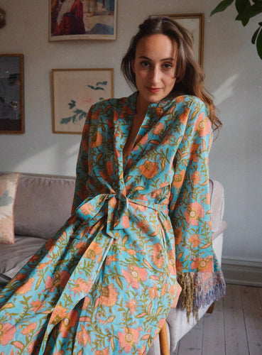 Våra bästsäljande morgonrockar i handtryckt bomull är det enklaste sättet att sätta guldkant på både morgon och kväll. Lätta, sköna och tidlöst vackra – och finns i en mängd mönster och färger att välja bland.