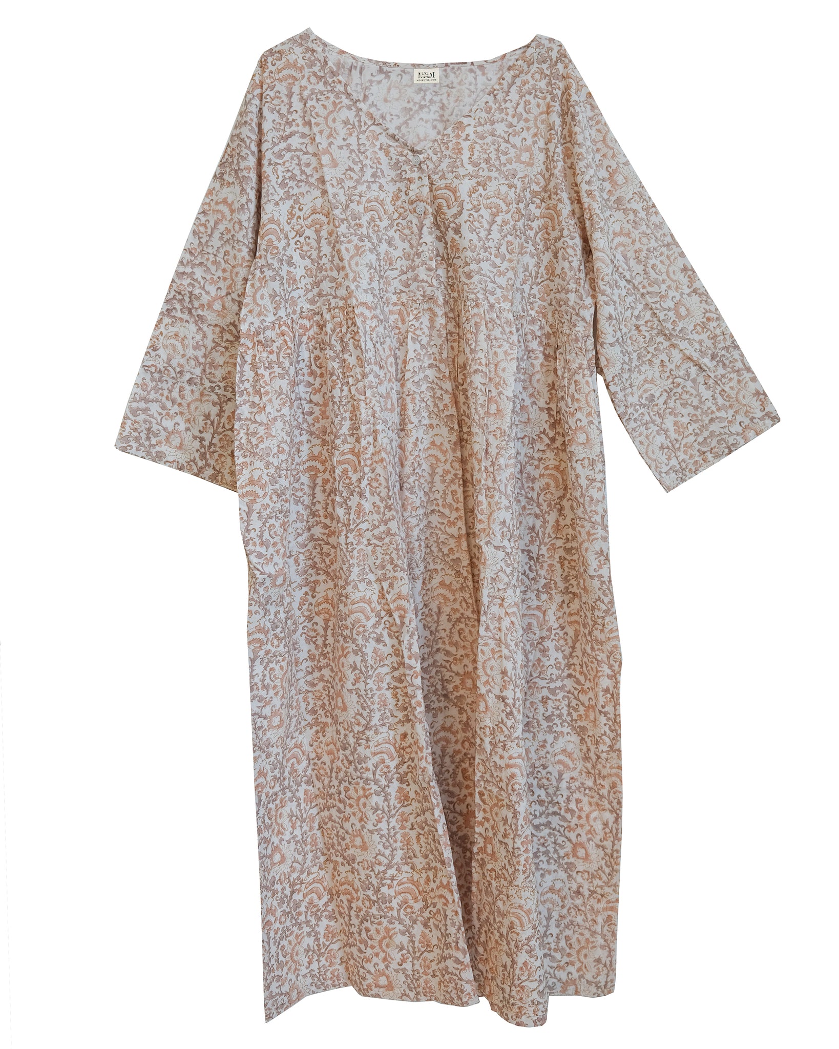 Klänning i mjukt, handtryckt bomull med halvlång ärm. Med knappar framtill.