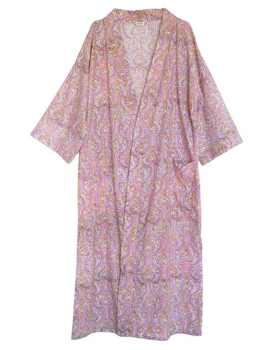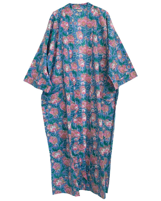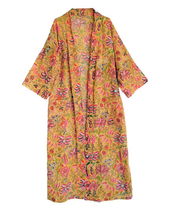 Upptäck våra morgonrockar i 100% bomull – handtryckta i färgstarka mönster från världens huvudstad för blocktryck: Jaipur. Perfekta för morgon och kväll, eller som kimono till vardags. Välj mellan långa och korta morgonrockar i många unika mönster. Läs mer om våra handtryckta tygerhär.