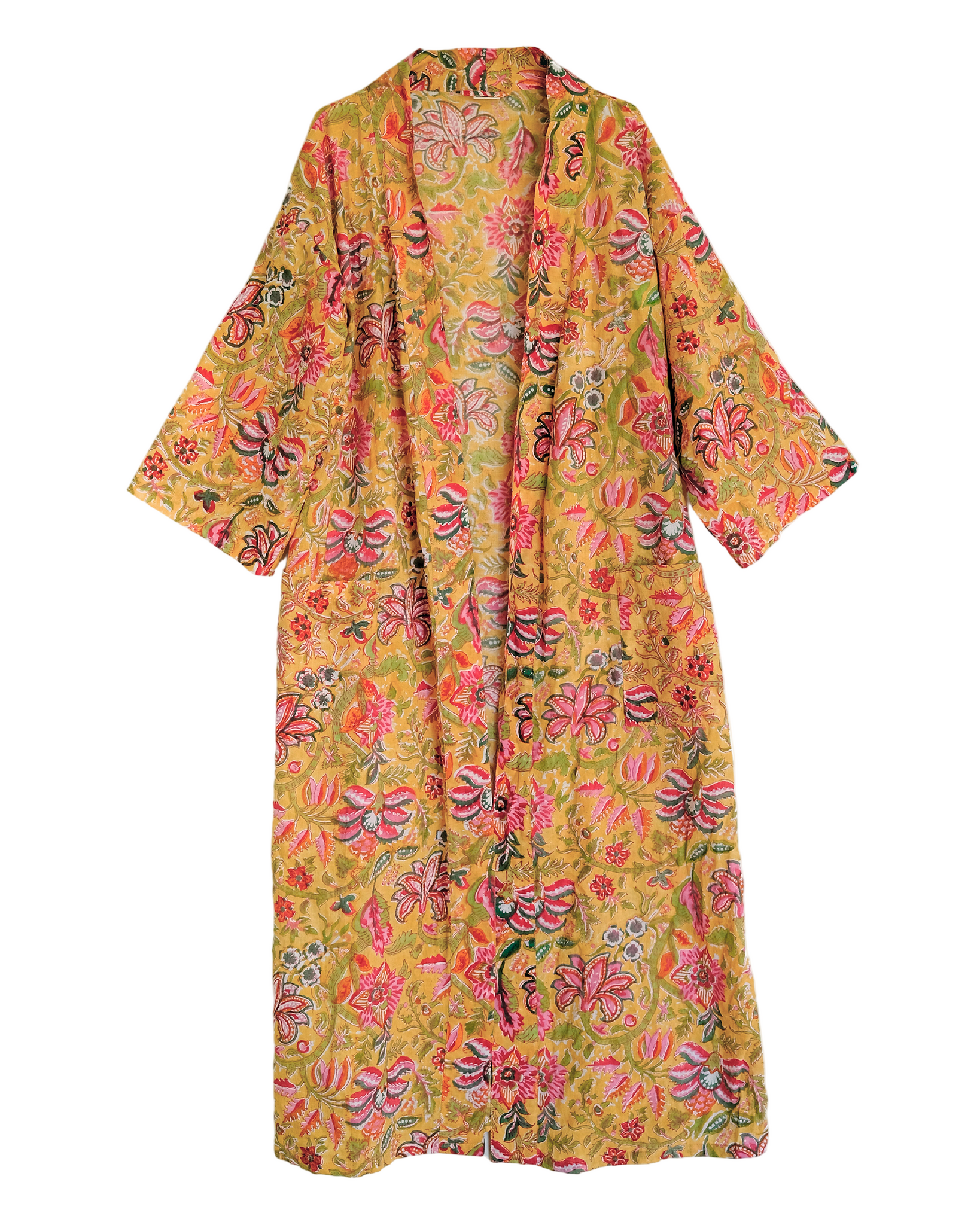 Morgonrock i handtryckt bomullstyg.