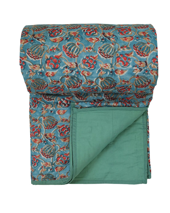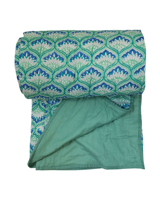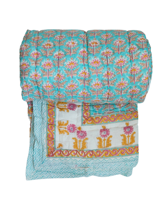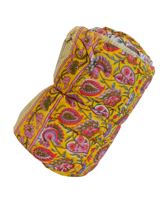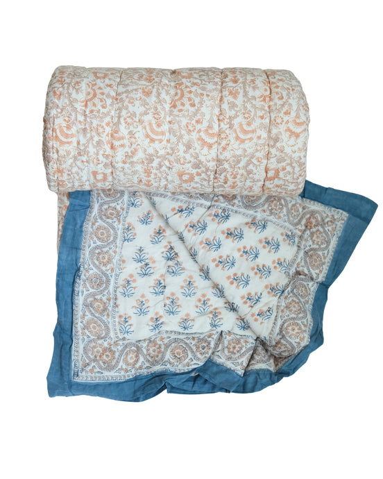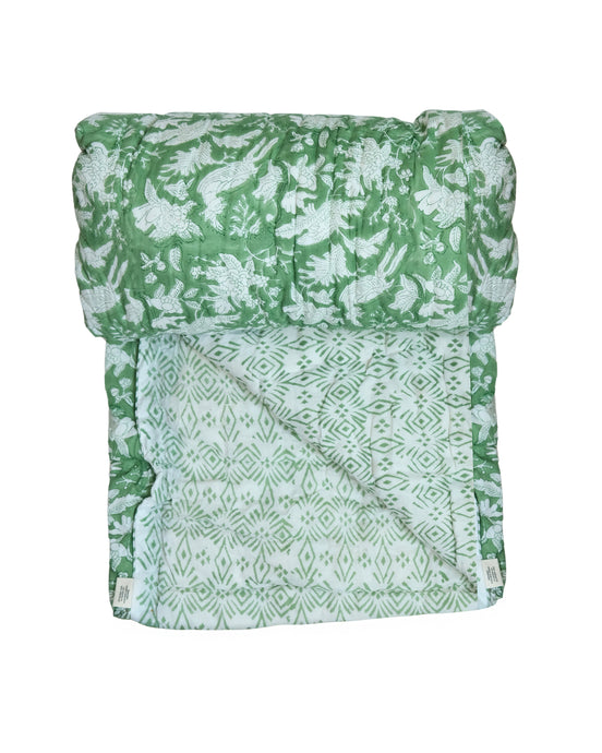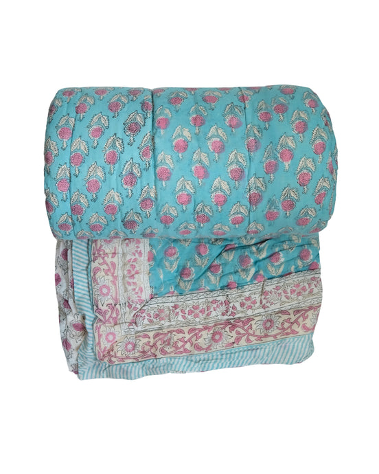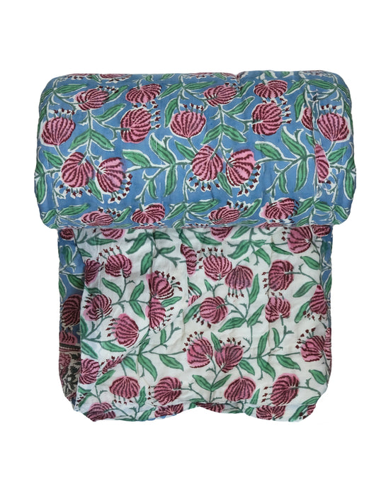 Våra överkast är tillverkade av mjukt handtryckt, quiltat bomullstyg. De finns i flera mönster som varierar för varje säsong.