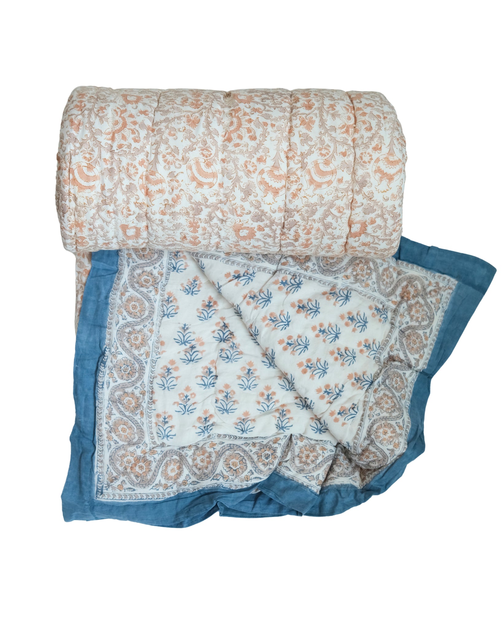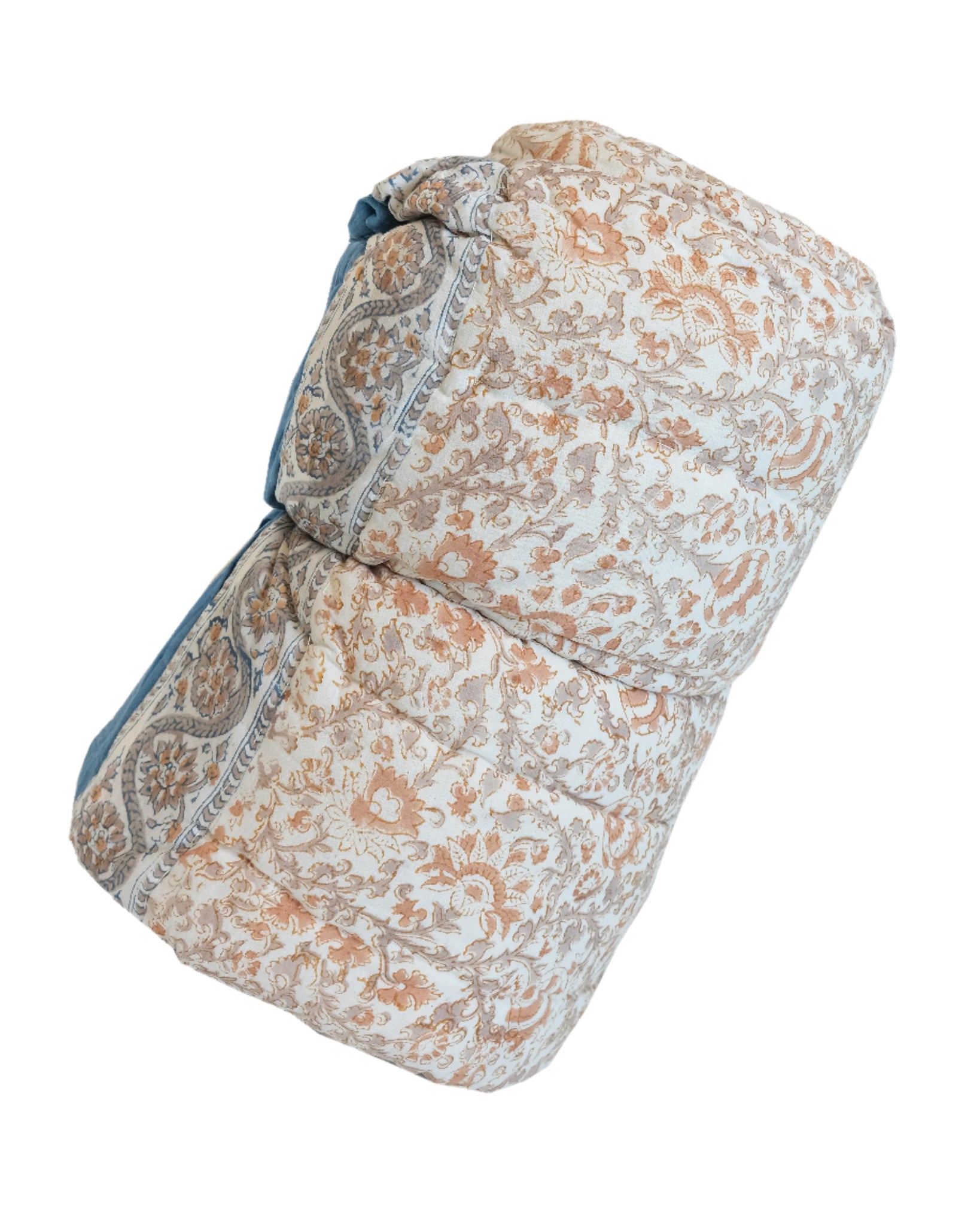 Överkast eller filt i mjukt, handtryckt bomullstyg, de flesta med olika tryck på varje sida. Se bild för vardera sida.