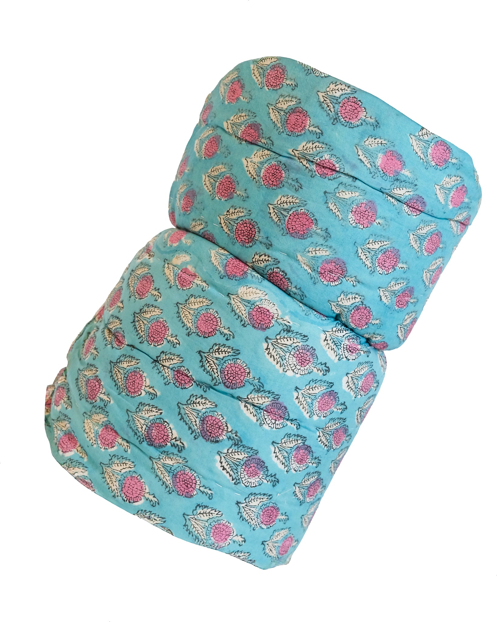 Överkast eller filt i mjukt, handtryckt bomullstyg, de flesta med olika tryck på varje sida. Se bild för vardera sida.